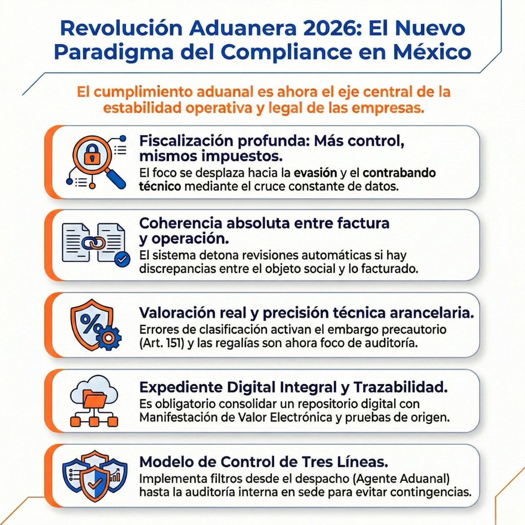 Con el Plan Maestro de Fiscalización 2025 y las reformas a la Ley Aduanera vigentes desde el 1 de enero de 2026, el entorno es más exigente. La supervisión es más profunda y el cruce de datos es constante. Las inconsistencias ya no pasan desapercibidas.